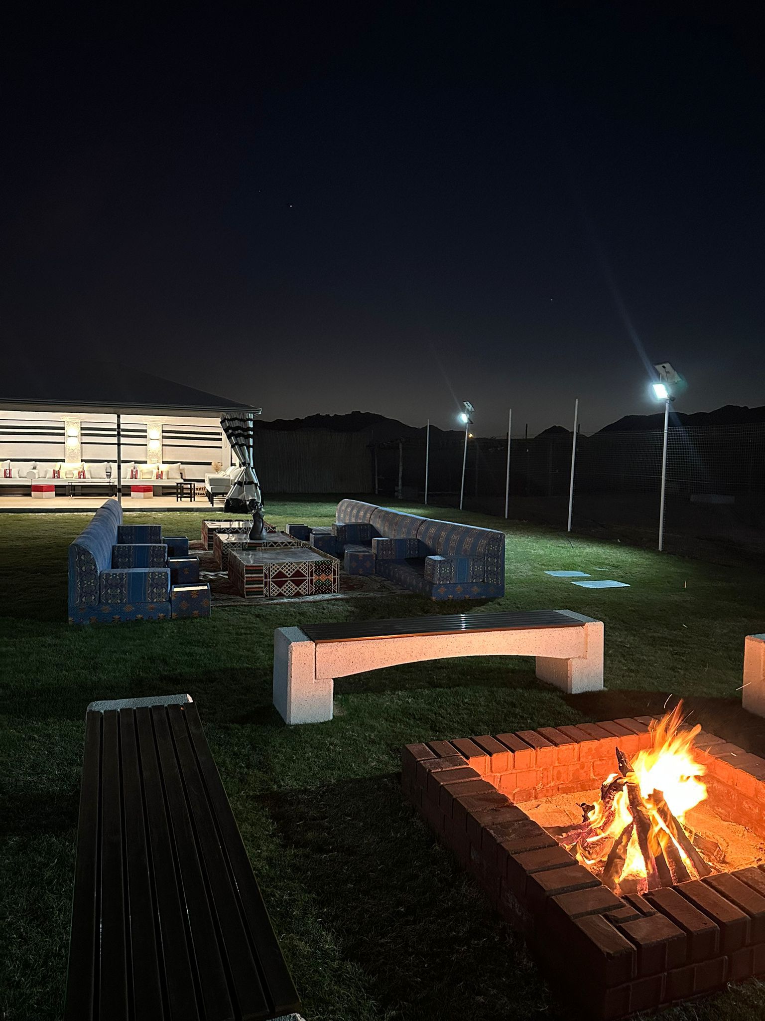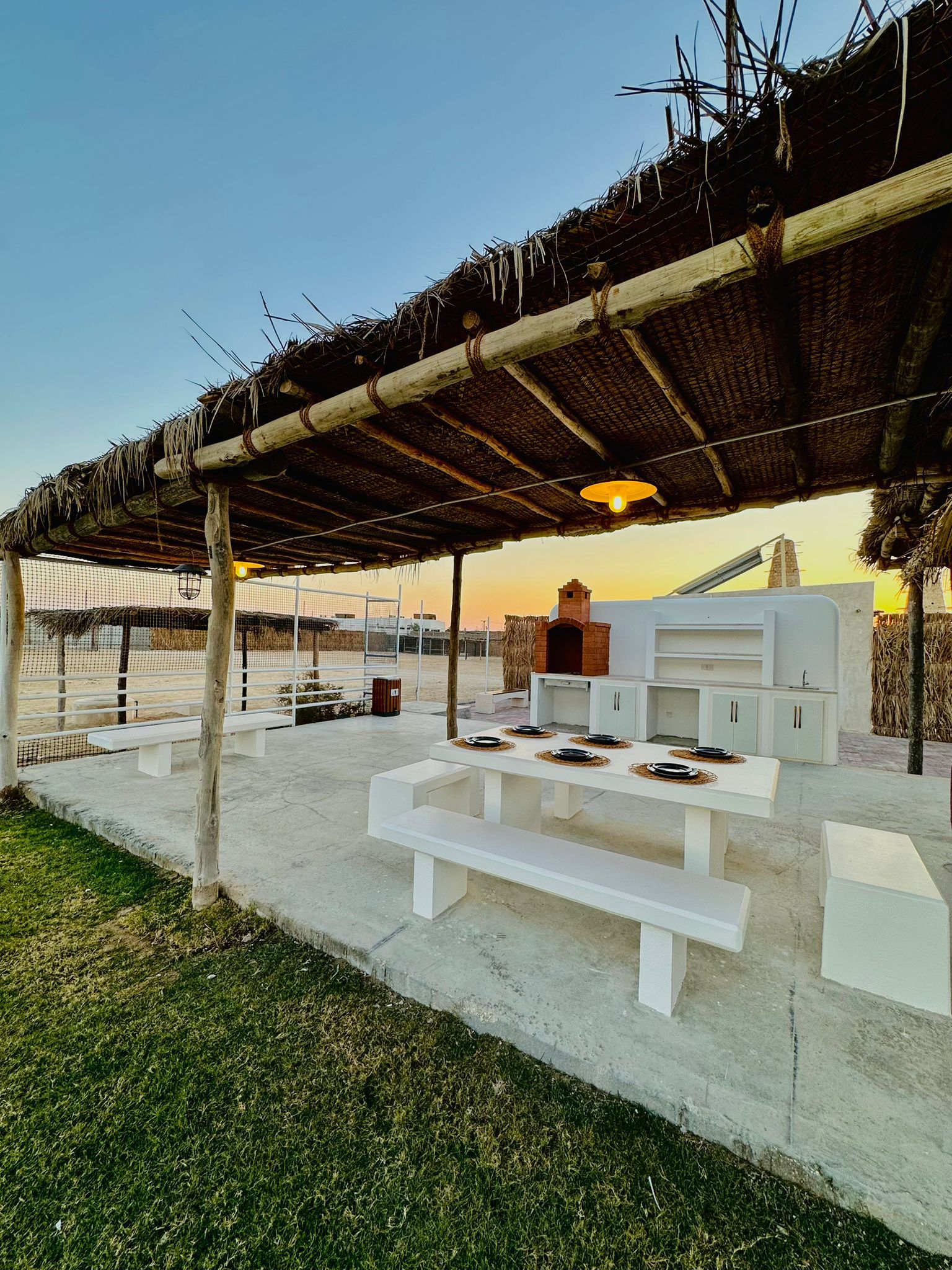 Experience a peaceful outdoor getaway at Al Maha Nature Camp, overlooking the Al Maha animal reserve and bird sanctuary. The camp offers two spacious majlis (up to 20 guests each), an outdoor majlis, four outdoor seating areas, a children’s play area, an outdoor kitchen, and a fully equipped BBQ area with a dining table for 10 guests. TV, internet, and firewood are provided, making it perfect for families, friends, and nature-loving group gatherings.