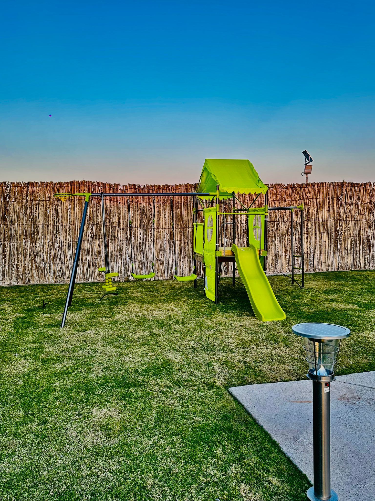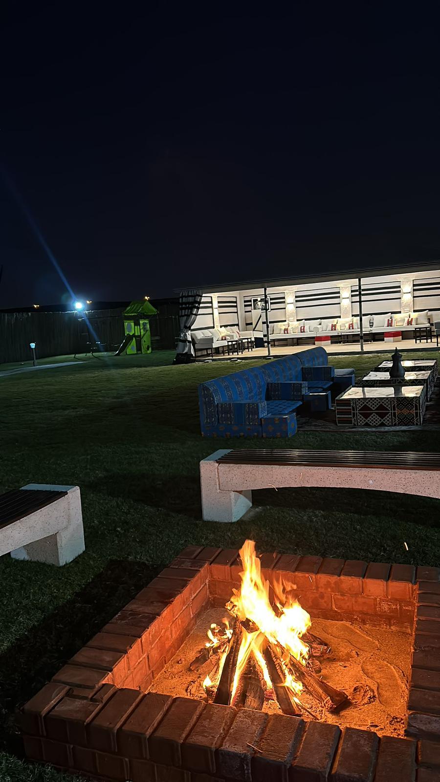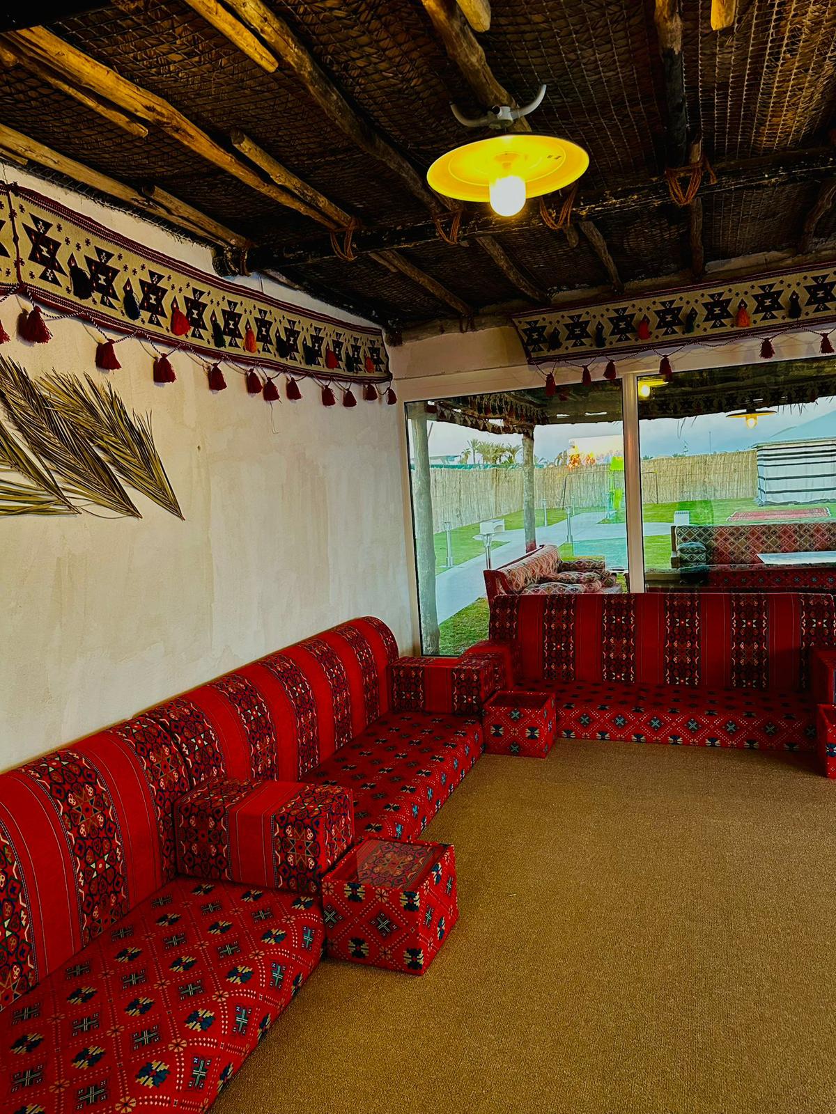 Experience a peaceful outdoor getaway at Al Maha Nature Camp, overlooking the Al Maha animal reserve and bird sanctuary. The camp offers two spacious majlis (up to 20 guests each), an outdoor majlis, four outdoor seating areas, a children’s play area, an outdoor kitchen, and a fully equipped BBQ area with a dining table for 10 guests. TV, internet, and firewood are provided, making it perfect for families, friends, and nature-loving group gatherings.